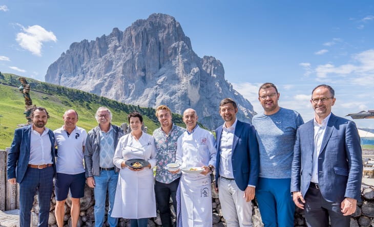 Kilde has not only proved to be an excellent skier, but also a skilled cook. On the Saslonch Hut, in the immediate vicinity of the legendary track, a “Carbonara à la Kilde” was served to the present guests - the provincial councilor Daniel Alfreider, IDM president Hansi Pichler, IDM general manager Erwin Hinteregger, the president of the organizing committee of the World Cup in Val Gardena Rainer Senoner and Sergio Tiezza, member of the organizing committee of the World Cup in Alta Badia. The special carbonara, with juniper, speck, chestnuts and venison ham, has been prepared by Michelin star chef Anna Matscher and it has been followed by a "suckling pig breast à la Kilde" with potato caraway dough leaves, cabbage salad and bock beer mayonnaise based on a recipe by Micheli star chef Gerhard Wieser.