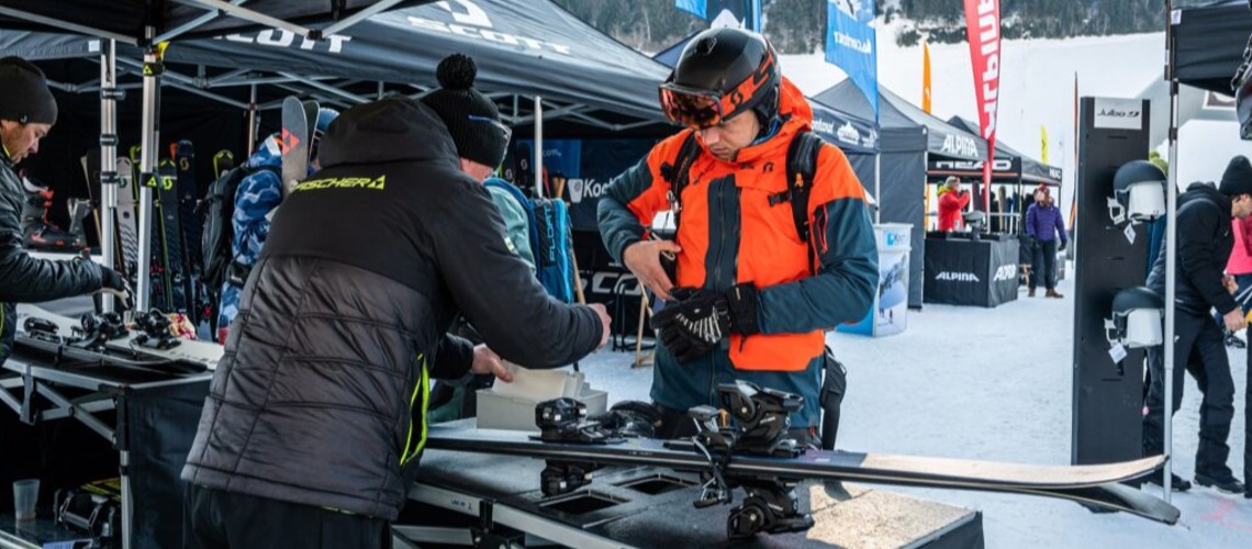 Freeriders can test brand new equipment from the leading manufacturers at the Freeride Testival in Hochfügen. © FreerideTestival/Lorenz Masser
