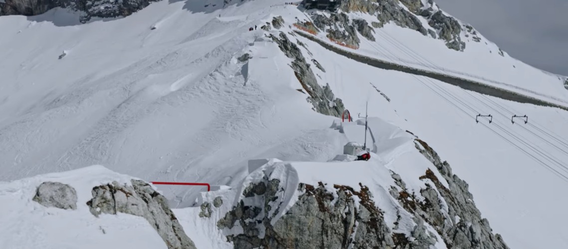 It is a mental tightrope, as it tests the athletes' mental strength, skills and nerves. ‘The hardest part was getting a feel for the course and overcoming mental blocks – you simply can't afford to make any mistakes,’ reveals Bösch, a Swiss slopestyle and big air athlete. ‘The gap rail is the craziest feature, where you have the least room for error,’ adds Matteoli. Georgii and Bösch agree – the seven-metre-long rail runs over a 110-metre-deep abyss. ‘Mentally, it was a big challenge,’ confirms Bösch. ‘But once you've overcome it, you're fully in it!’