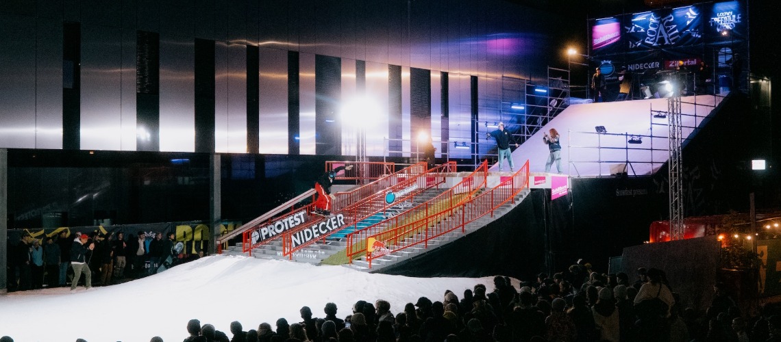 The essence of the Rock A Rail Tour, now in its third year, lies in street snowboarding and street skiing. No other format represents rail contests at such a high level. Progressive and creative setups featuring technically demanding rails and features challenge the riders to their limits while offering endless opportunities for creativity. On the impressive structure, 8 meters wide, 7 meters high, and 40 meters long including the landing – riders showcased what’s possible on one or two boards.