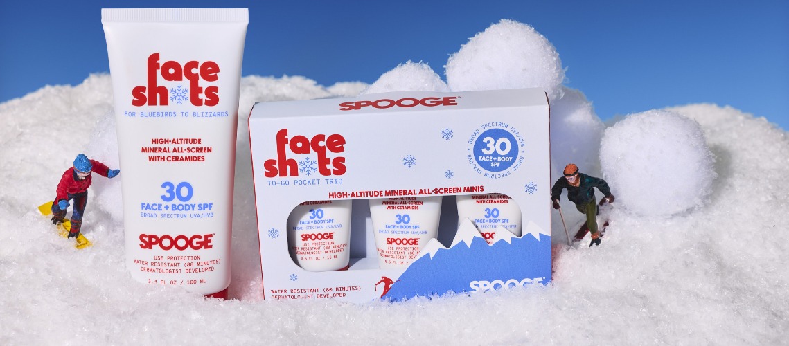 SPOOGE, the high-performance, dermatologist-developed suncare brand, introduces its latest launch: Face Shots— a high-altitude, mineral all-screen with ceramides, designed for skiers, snowboarders, and alpine thrill-seekers who live for snow days, long chairlift rides. Inspired by the moment powder flies in your face—pure snow day bliss—the name reflects the mountain lifestyle it was built for.